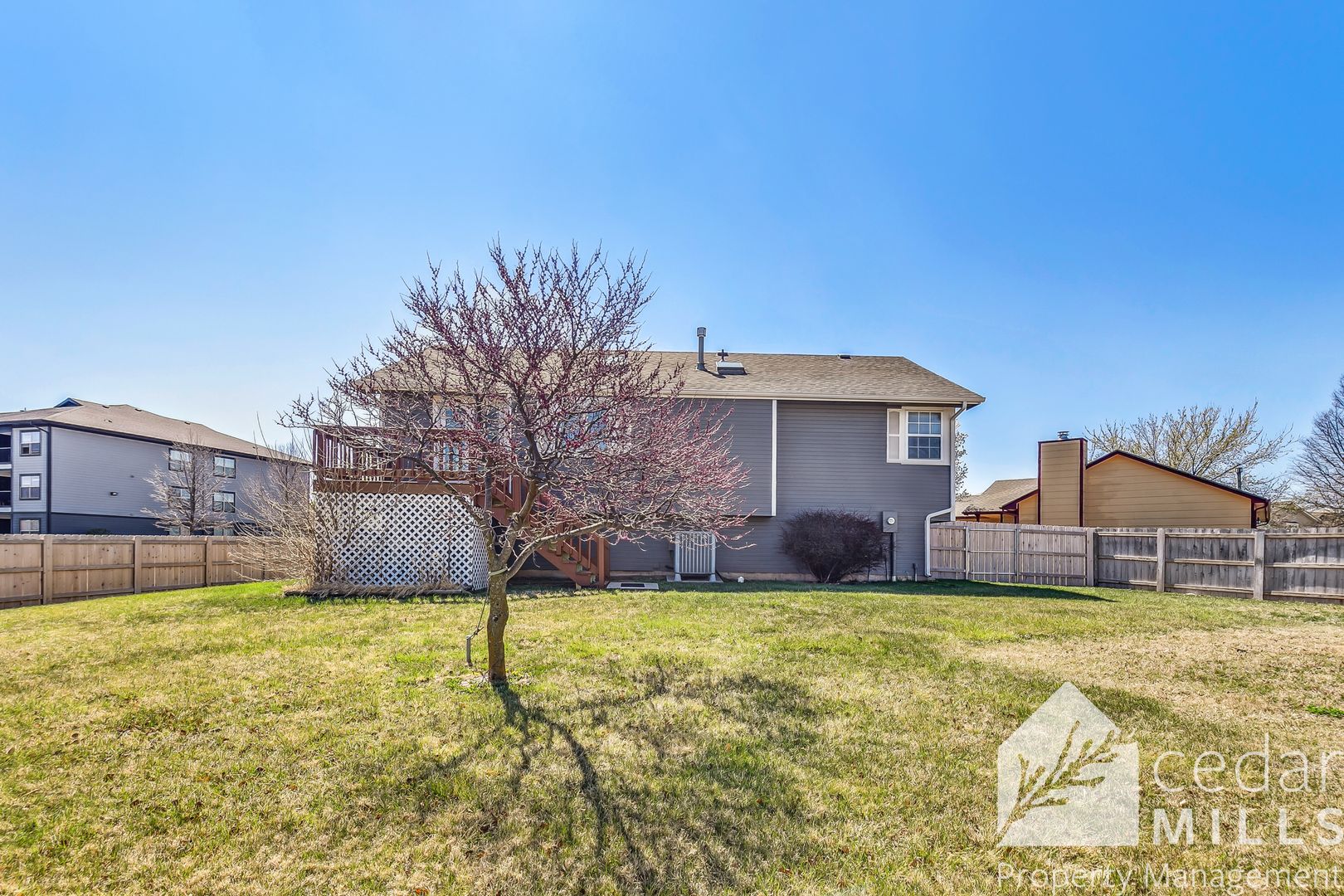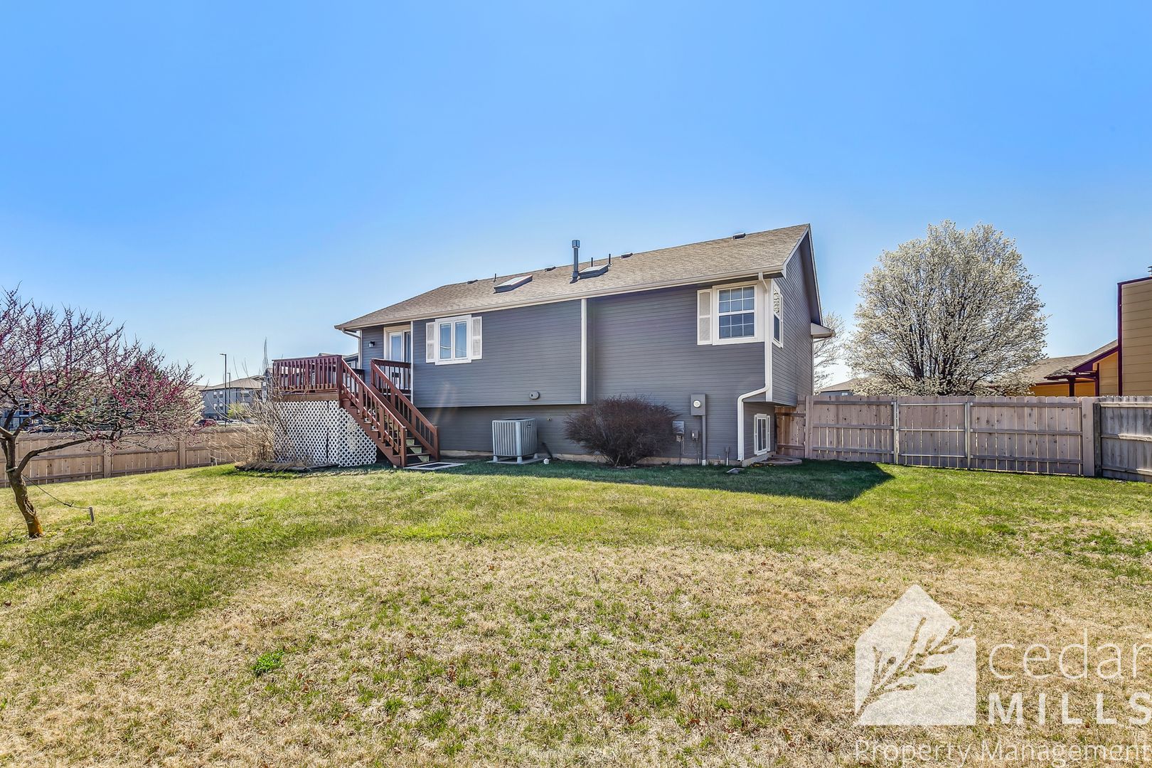 The back yard is huge and has a gorgeous cedar privacy fence all around.