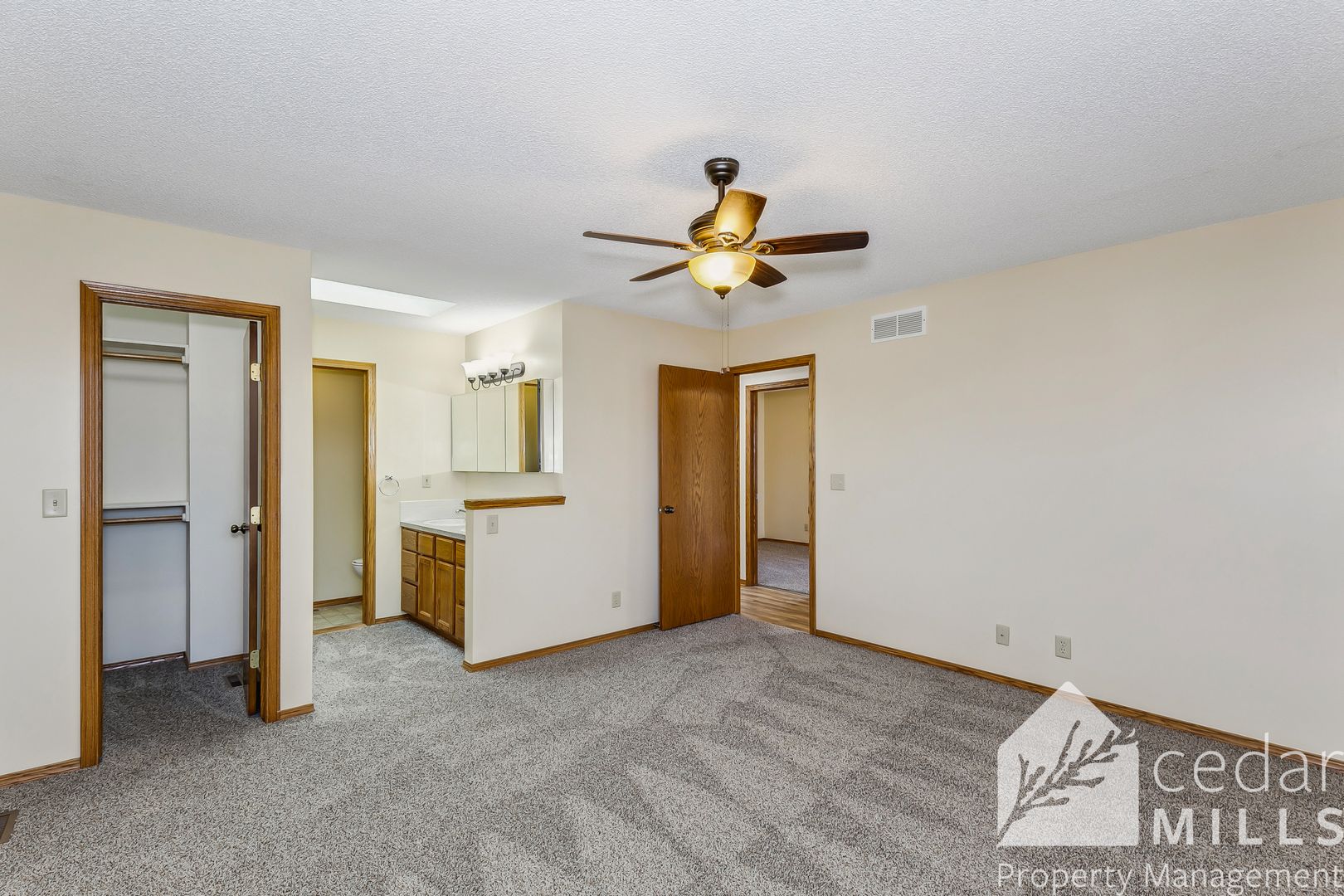 Two bedrooms and the master are located on the upper level, along with the second bath. The master is large and features yet, another skylight and water closet.