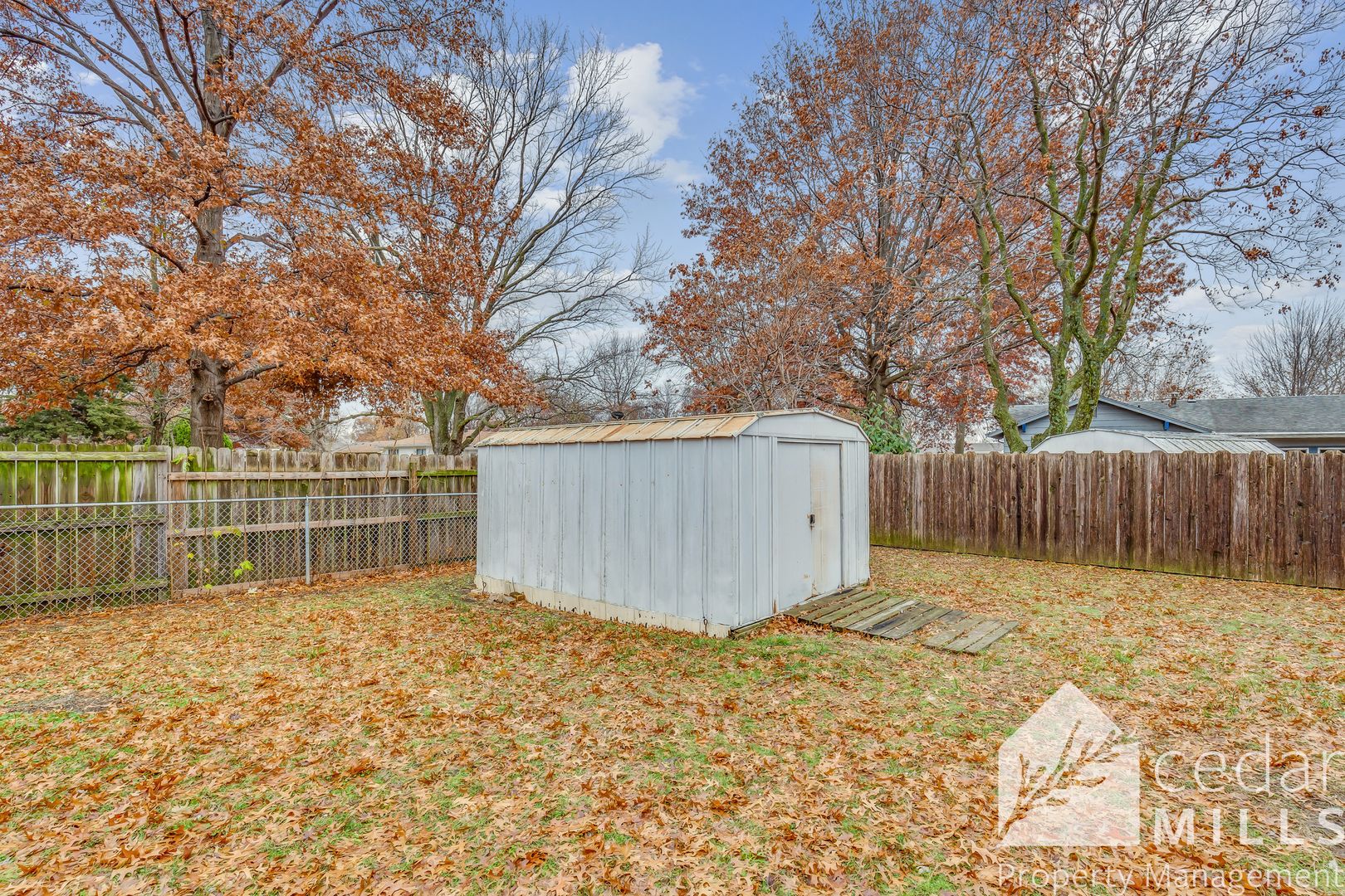 Outside there is a large two car garage, fenced back yard and a big wooden deck.