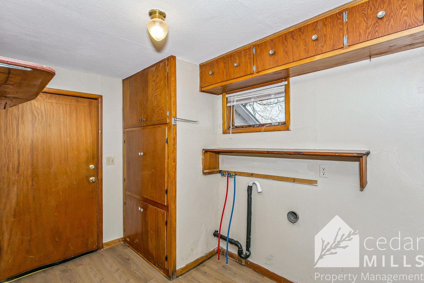 Finally, you reach the laundry room, equipped with washer and dryer connections and even more built in cabinetry for additional storage.